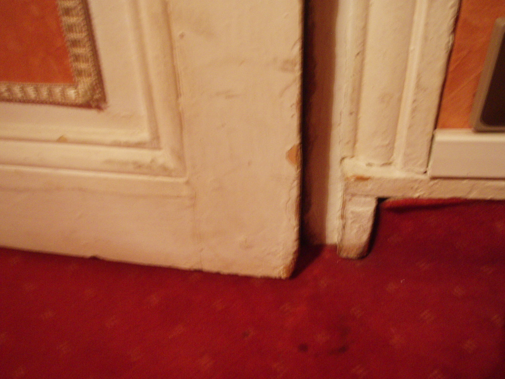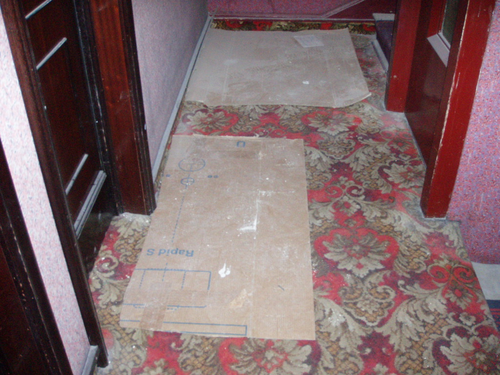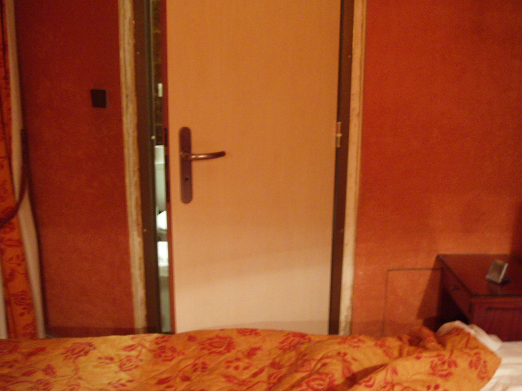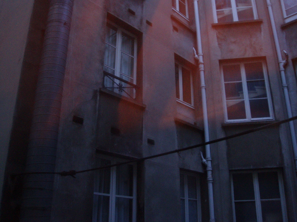 まず、狭い、暗い、壁はつぎはぎだらけ、しみだらけ。バスルームのドアがベッドにつかえて30センチしか開かない、床はべこべこ、パリの裏町のようにゴミがおちていて空さえ見えない窓からの光景。エレベーター、廊下など毛布やダンボールが敷いてありペンキや木くずがおちていました。