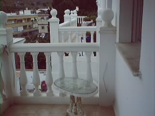 すぐ下にはペタンカというゲートボールのようなゲームのコートがある。左側には緑の屋根の日覆いがあるマンションが見える。右側にはピンクの建物、観光協会があり、公園の木々が見える。その向こうの山の上にはカスティージョ(城)が見える。そこには歴史を説く博物館もあるという話だ。